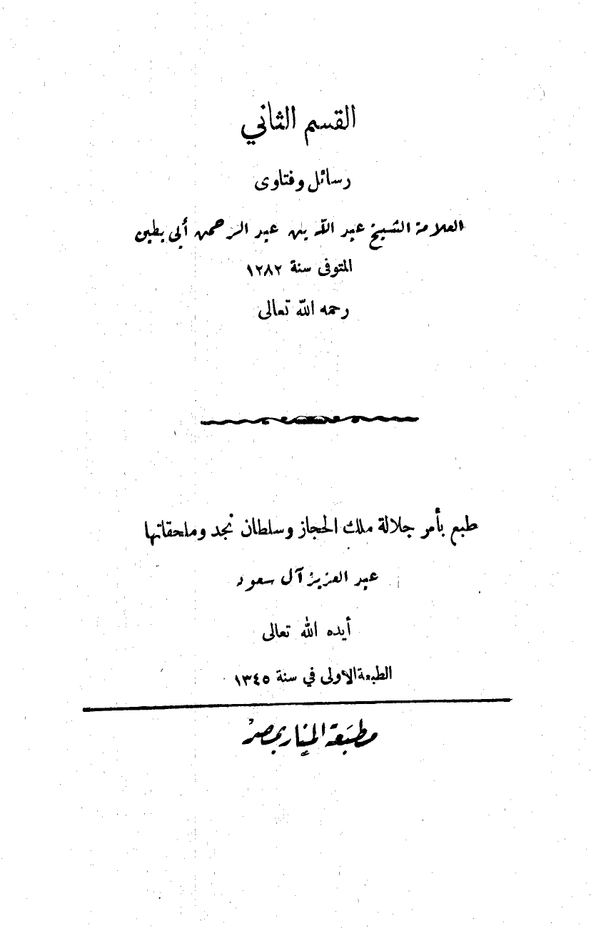 طبع بأمر جلالة ملك الحجاز وسلطان نجد وملحقاتها