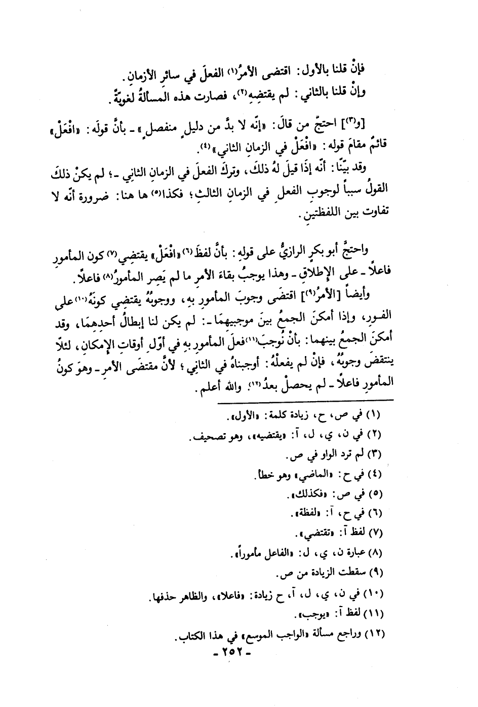 فإن قلنا بالأول اقتضى الأمر الفعل في سائر الأزمان وإن قلنا بالثاني لم يقتضه فصارت هذه المسألة لغوية واحتج من قال أنه لا بد من دليل منفصل بأن قوله إفعل قائم مقام قوله إفعل في الزمان الثاني وقد بينا أنه إذا قيل له ذلك وترك الفعل في الزمان الثاني لم يكن ذلك القول سببا لوجوب الفعل في الزمان الثالث فكذا ها هنا ضرورة أنه لا تفاوت بين اللفظتين واحتج أبو بكر الرازي على قوله بأن لفظ إفعل يقتضي كون المأمور فاعلا على الإطلاق وهذا يوجب بقاء الأمر إلا ما لم يصر المأمور فاعلا وأيضا الأمر اقتضى وجوب المأمور به ووجوبه يقتضي كونه على الفور وإذا أمكن الجمع بين موجبيهما لم يكن لنا إبطال أحدهما وقد
