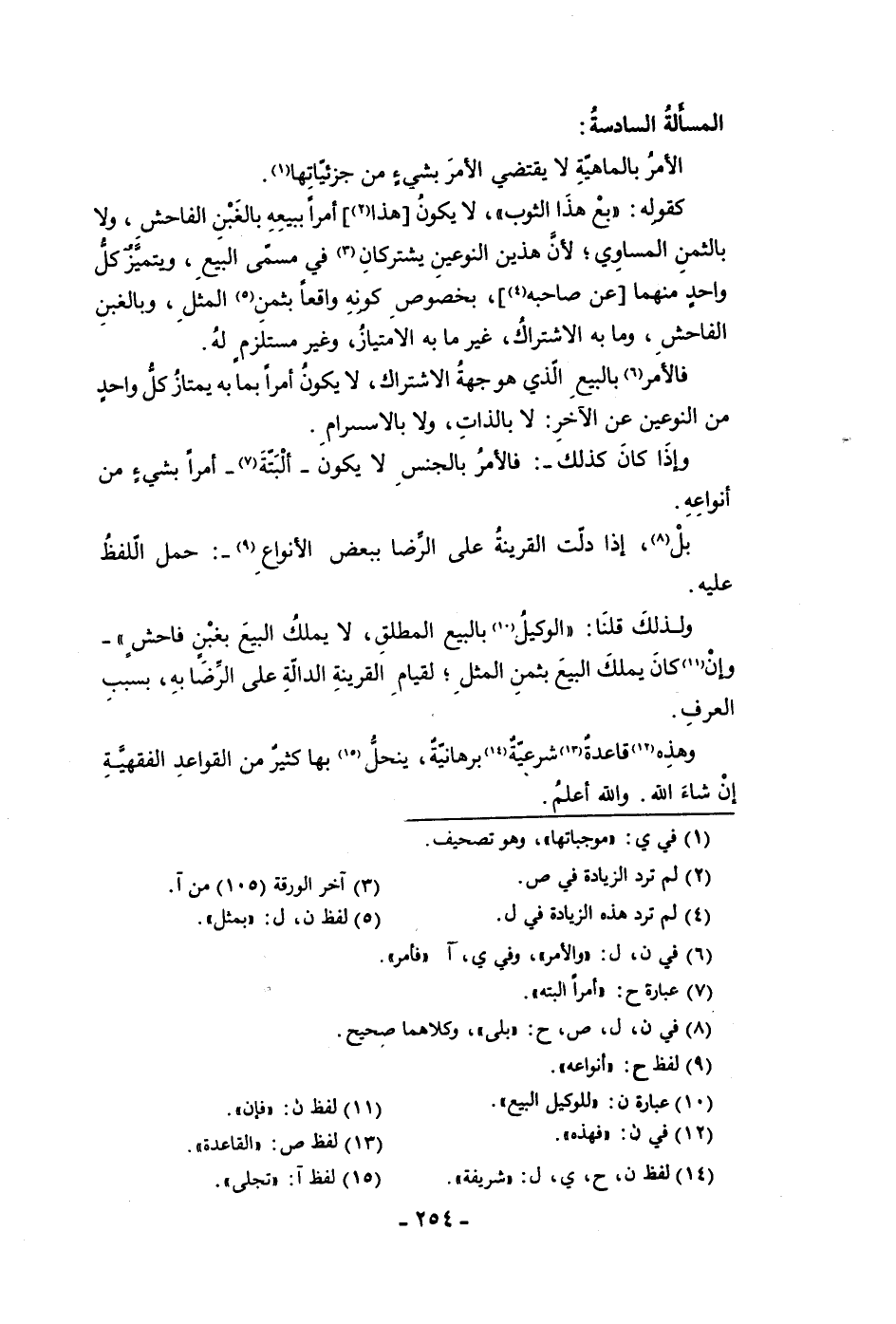 المسألة السادسة الأمر بالماهية لا يقتضي الأمر بشئ من جزئياتها كقوله بع هذا الثوب لا يكون هذا أمرا ببيعه بالغبن الفاحش ولا بالثمن المساوي لأن هذين النوعين يشتركان في مسمى البيع ويتمير كل واحد منهما عن صاحبه بخصوص كونه واقعا بثمن المثل وبالغبن الفاحش وما به الاشتراك غير ما به الامتياز وغير مستلزم له فالأمر بالبيع الذي هو جهة الاشتراك لا يكون أمرا بما به يمتاز كل واحد من النوعين عن الآخر لا بالذات ولا بالاستلزام