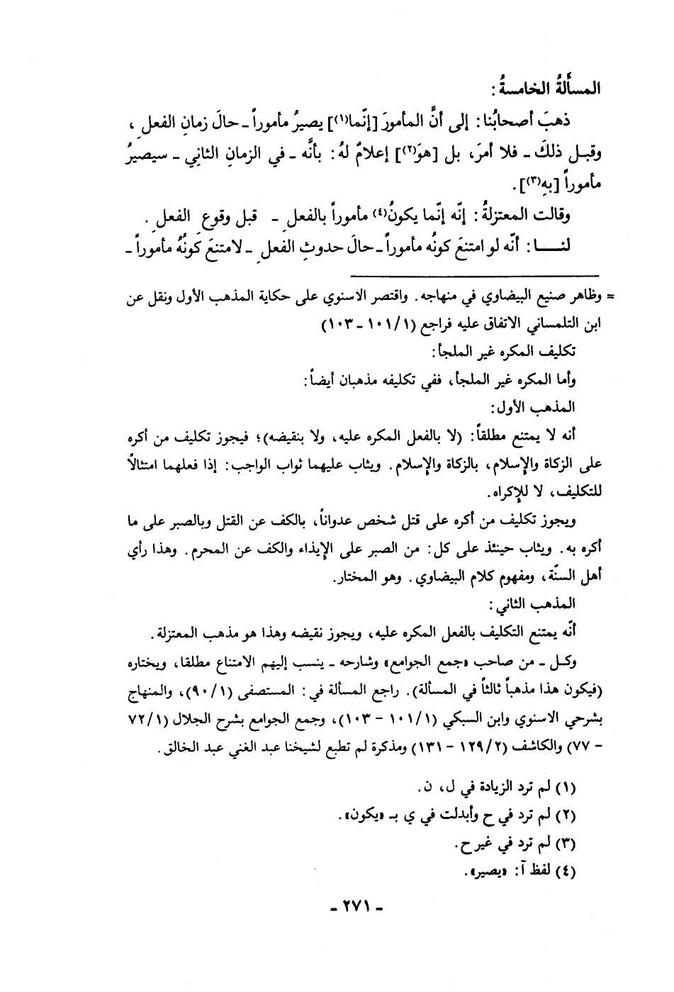 المسألة الخامسة ذهب أصحابنا إلى أن المأمور إنما يصير مأمورا حال زمان الفعل وقبل ذلك فلا أمر بل هو إعلام له بأنه في الزمان الثاني سيصير مأمورا به وقالت المعتزلة إنه إنما يكون مأمورا بالفعل قبل وقوع الفعل لنا أنه لو امتنع كونه مأمورا حال حدوث الفعل لامتنع كونه مأمورا
