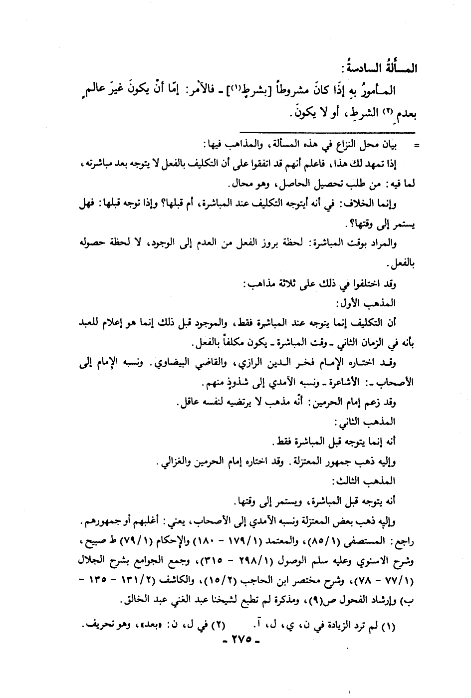 المسألة السادسة المأمور به إذا كان مشروطا بشرط فالآمر إما أن يكون غير عالم بعدم الشرط أو لا يكون