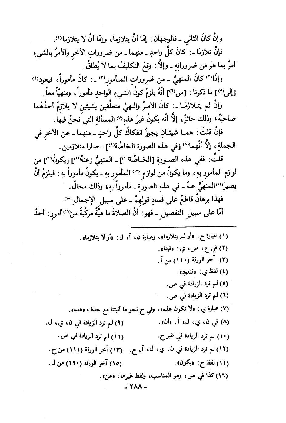 وإن كان الثاني فالوجهان إما أن يتلازما وإما أن لا يتلازما فإن تلازما كان كل واحد منهما من ضرورات الآخر والأمر بالشئ أمر بما هو من ضروراته وإلا وقع التكليف بما لا يطاق وإذا كان المنهي من ضرورات المأمور كان مأمورا فيعود إلى ما ذكرنا من أنه يلزم كون الشئ الواحد مأمورا ومنهيا معا وإن لم يتلازما كان الأمر والنهي متعلقين بشيئين لا يلازم أحدهما صاحبه وذلك جائز إلا أنه يكون غير هذه المسألة التي نحن فيها فإن قلت هما شيئان يجوز انفكاك كل واحد منهما عن الآخر في الجملة إلا أنهما في هذه الصورة الخاصة صارا متلازمين قلت ففي هذه الصورة الخاصة المنهي عنه يكون من لوازم المأمور به وما يكون من لوازم المأمور به يكون مأمورا به فيلزم أن