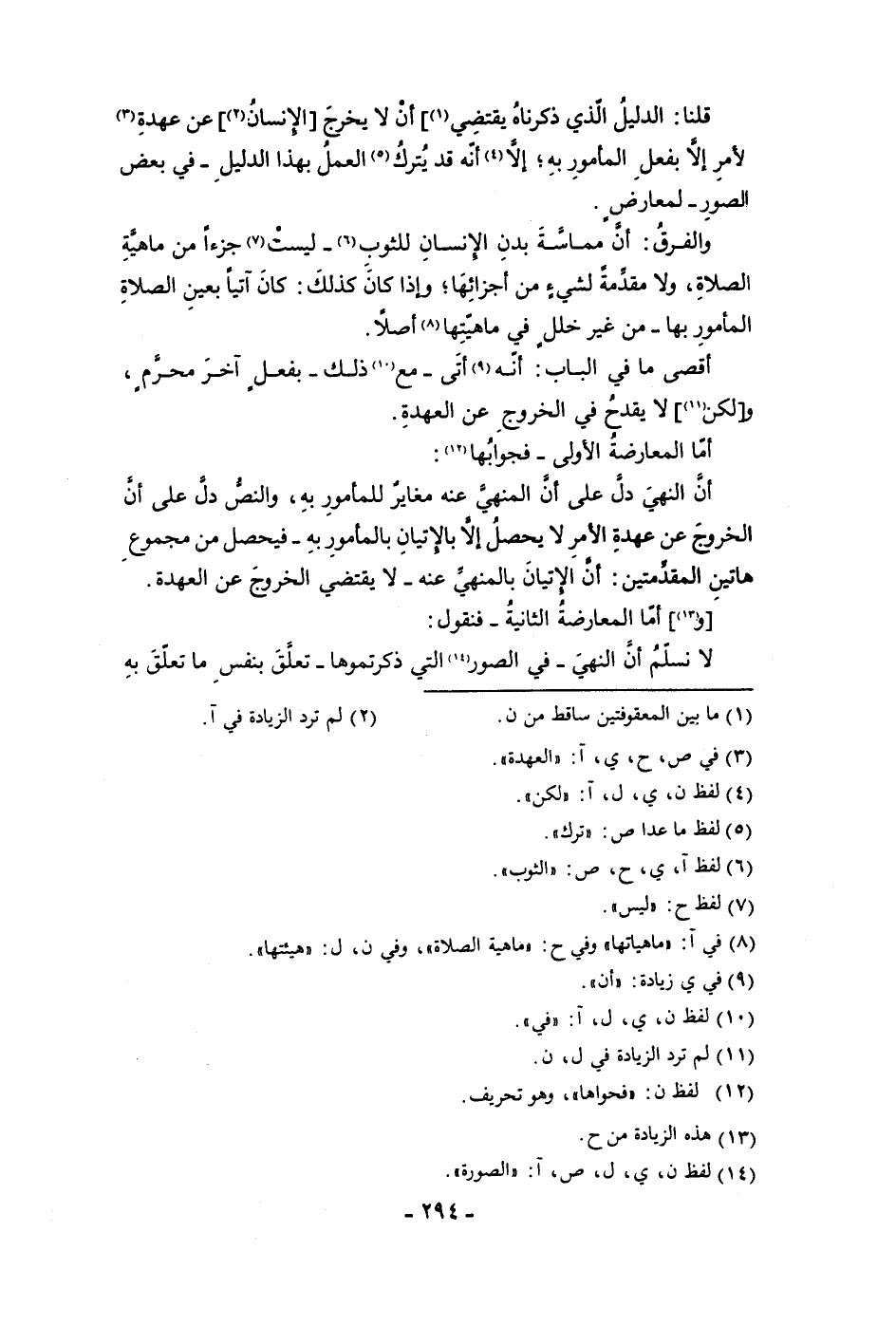 قلنا الدليل الذي ذكرناه يقتضي أن لا يخرج الإنسان عن عهدة الأمر إلا بفعل المأمور به إلا أنه قد يترك العمل بهذا الدليل في بعض الصور لمعارض والفرق أن مماسة بدن الإنسا للثوب ليست جزءا من ماهية الصلاة ولا مقدمة لشئ من أجزائها وإذا كان كذلك كان آتيا بعين الصلاة المأمور بها من غير خلل في ماهيتها أصلا