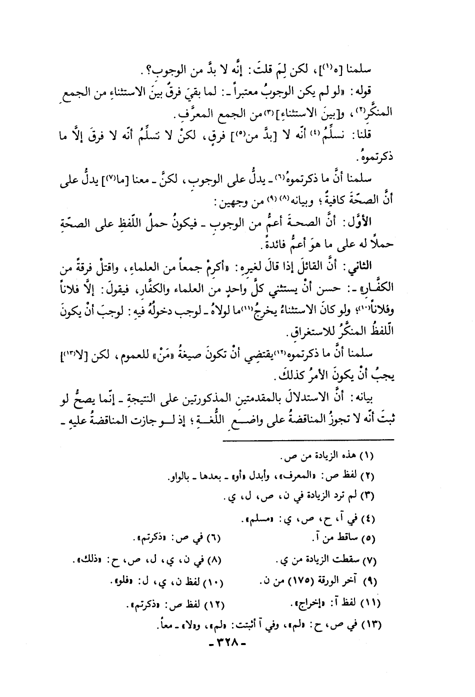 سلمناه لكن لم قلت إنه لا بد من الوجوب قوله لو لم يكن الوجوب معتبرا لما بقي فرق بين الاستثناء من الجمع المنكر وبين الاستثنا من الجمع المعرف قلنا نسلم أنه لا بد من فرق لكن لا نسلم أنه لا فرق إلا ما
