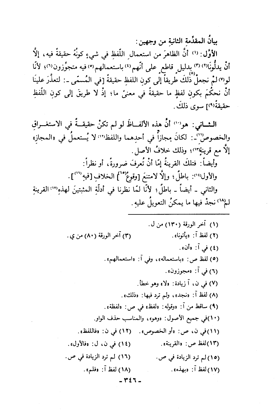 بيان المقدمة الثانية من وجهين الأول أن الظاهر من استعمال اللفظ في شئ كونه حقيقة فيه إلا أن يدلونا بدليل قاطع على أنهم باستعماله فيه متجوزون لأنا