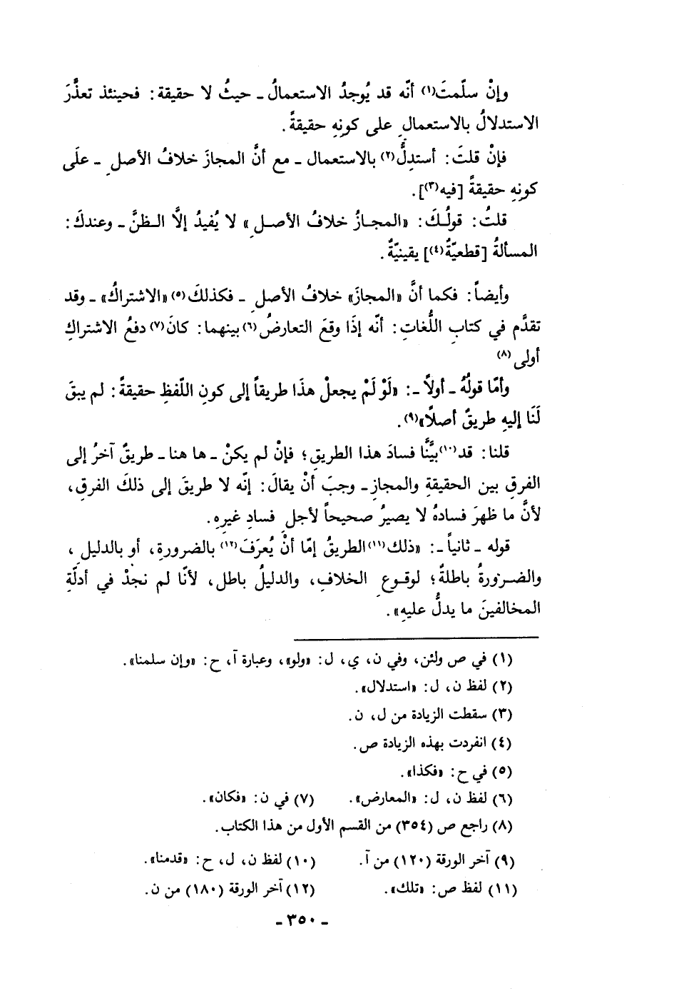 قلنا قد بينا فساد هذا الطريق فإن لم يكن ها هنا طريق آخر إلى الفرق بين الحقيقة والمجاز وجب أن يقال إنه لا طريق إلى ذلك الفرق لأن ما ظهر فساده لا يصير صحيحا لأجل فساد غيره قوله ثانيا ذلك الطريق إما أن يعرف بالضرورة أو بالدليل والضرورة باطلة لوقوع الخلاف والدليل باطل لأنا لم نجد في أدلة الخالفين ما يدل عليه
