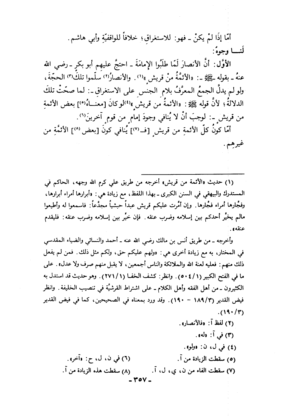 أما إذا لم يكن فهو للاستغراق خلافا للواقفية وأبي هاشم لنا وجوه الأول أن الأنصار لما طلبوا الإمامة احتج عليهم أبو بكر رضي الله عنه بقوله ص الأئمة من قريش والأنصار سلموا تلك الحجة ولو لم يدل الجمع المعرف بلام الجنس على الاستغراق لما صحت تلك الدلالة لأن قوله ص الأئمة من قريش لو كان معناه بعض الأئمة من قريش لوجب أن لا ينافي وجود إمام من قوم آخرين أما كون كل الآئمة من قريش فينافي كون بعض الأئمة من غيرهم