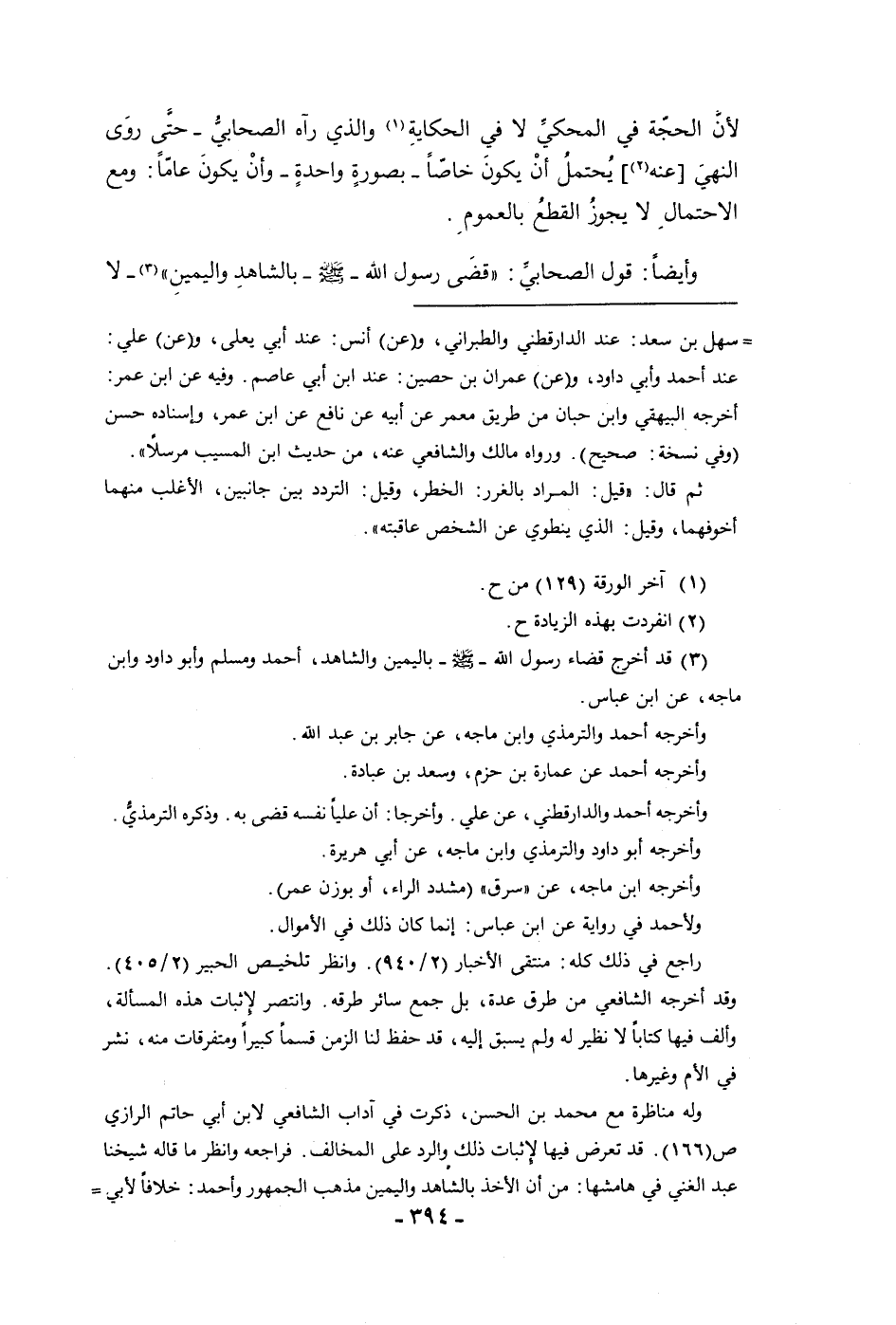 لأن الحجة في المحكي لا في الحكاية والذي رآه الصحابي حتى روى النهي عنه يحتمل أن يكون خاصا بصورة واحدة وأن يكون عاما ومع الاحتمال لا يجوز القطع بالعموم وأيضا قول الصحاب قضى رسول الله ص بالشاهد واليمين لا
