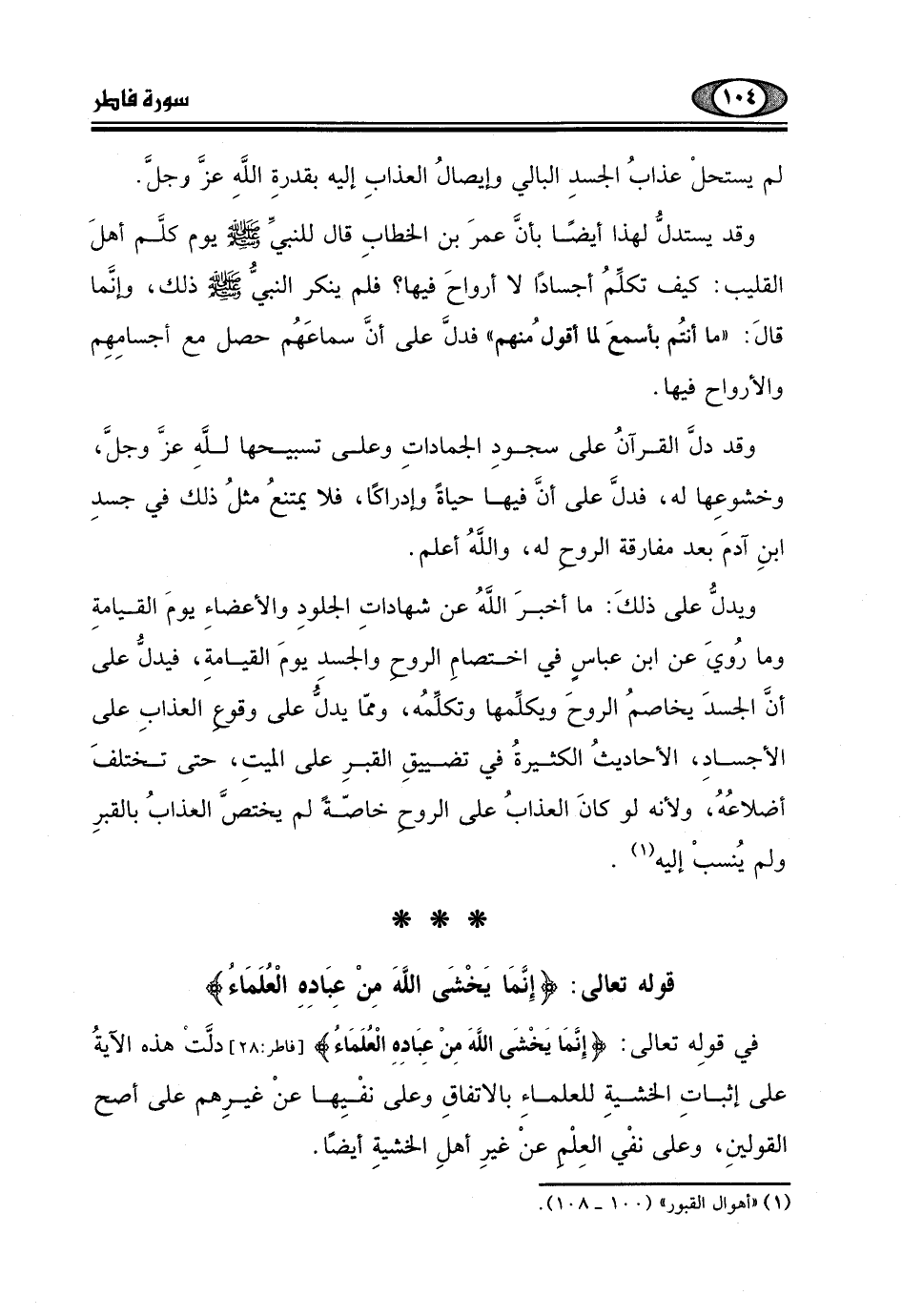 قوله تعالى: (إِنَّمَا يَخْشَى اللَّهَ مِنْ عِبَادِهِ الْعُلَمَاءُ)