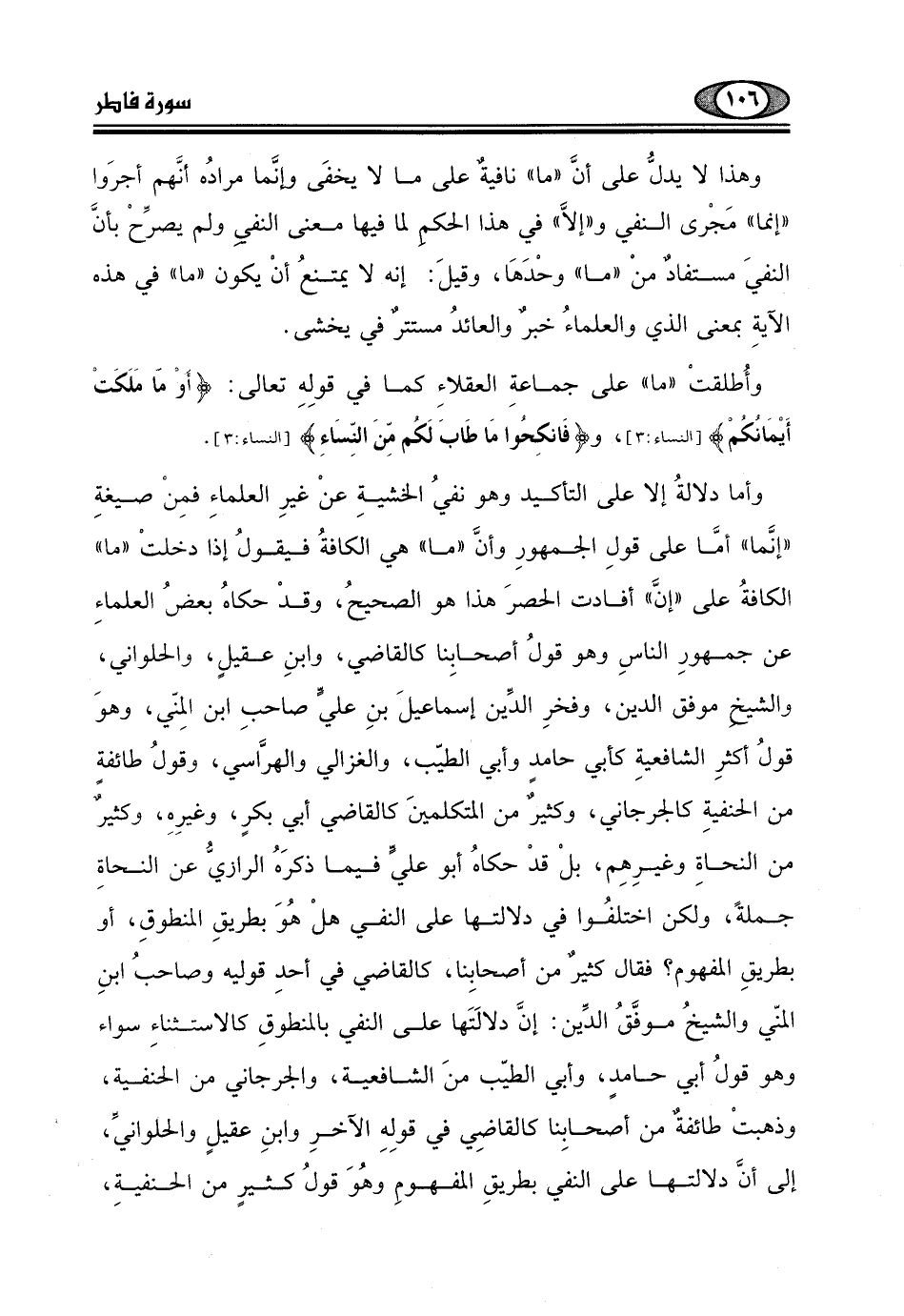 وأما دلالةُ إلا على التأكيد وهو نفيُ الخشيةِ عنْ غيرِ العلماءِ فمِنْ صيغةِ