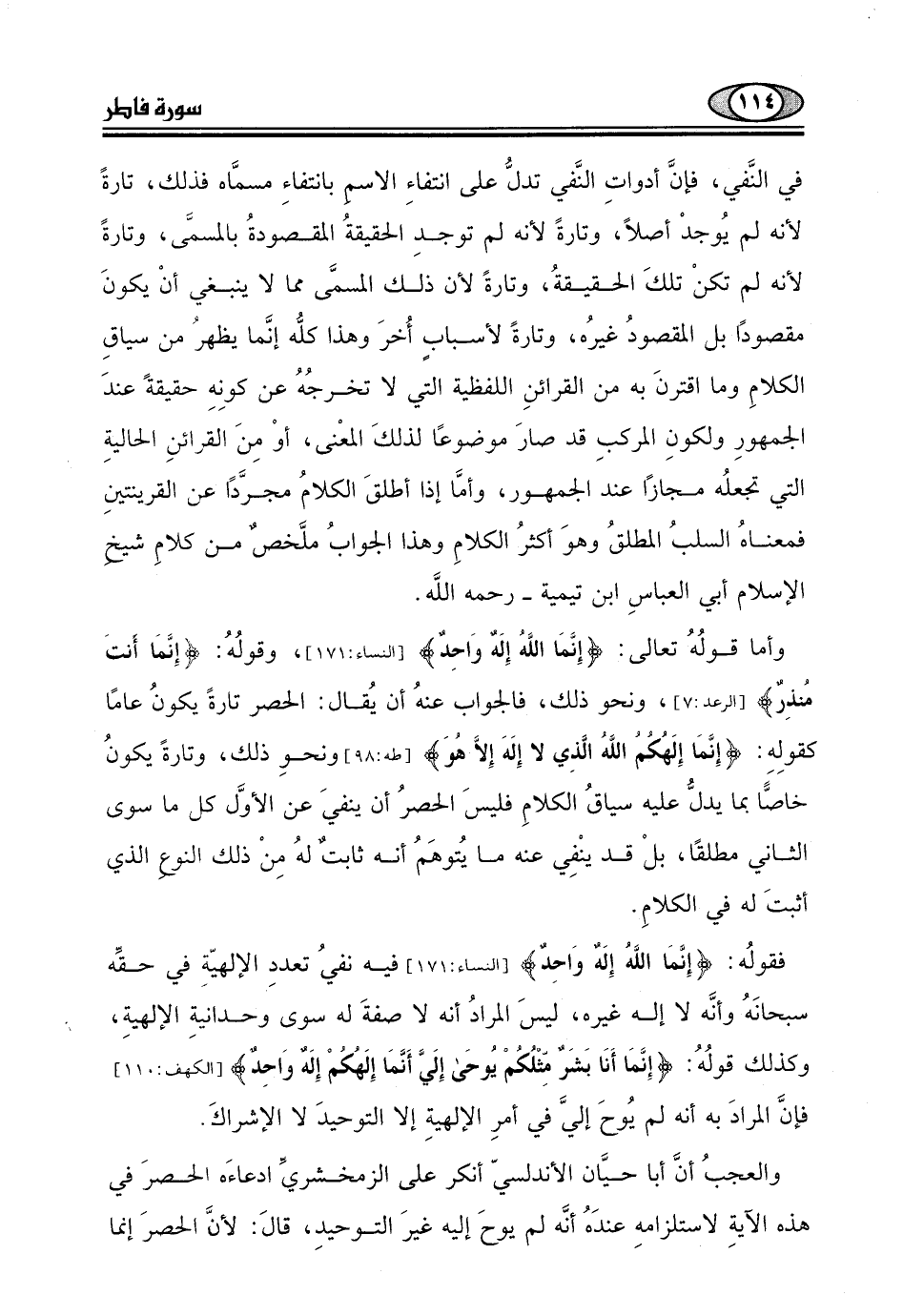 وأما قولُهُ تعالى: (إِنَّمَا اللَّهُ إِلَهٌ وَاحِدٌ) ، وقولُهُ: (إِنَّمَا أًنتَ مُنذِرٌ) .