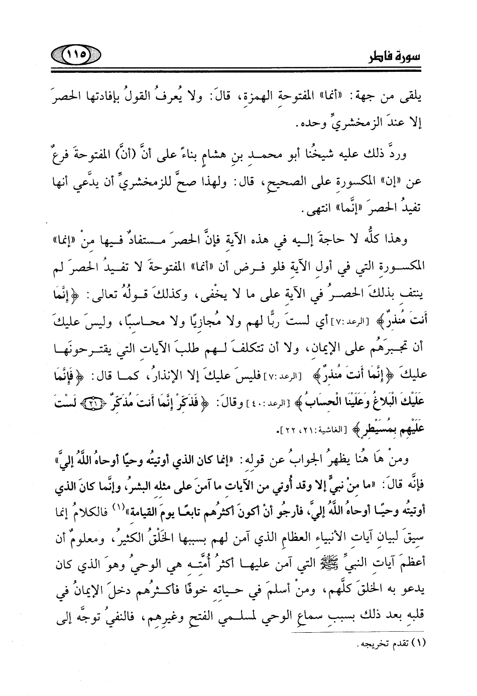 يلقى من جهة: "أنما" المفتوحةِ الهمزةِ، قالَ: ولا يُعرفُ القولُ بإفادتها الحصرَ