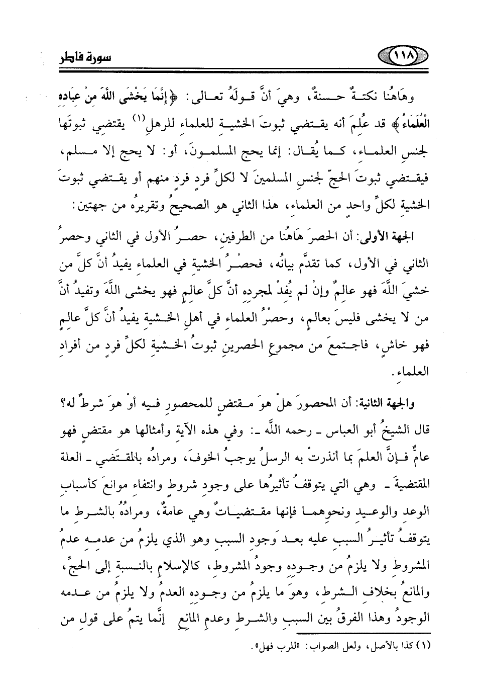 الْعُلَمَاءُ) قد عُلِمَ أنه يقتضي ثبوتَ الخشيةِ للعلماءِ للرهطِ (1) يقتضِي ثبوتَها
