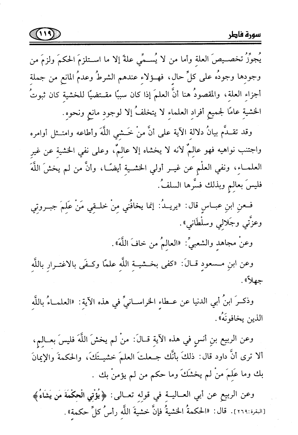 وعنْ مجاهدٍ والشعبيِّ: "العالِمُ من خافَ اللَّهَ ".