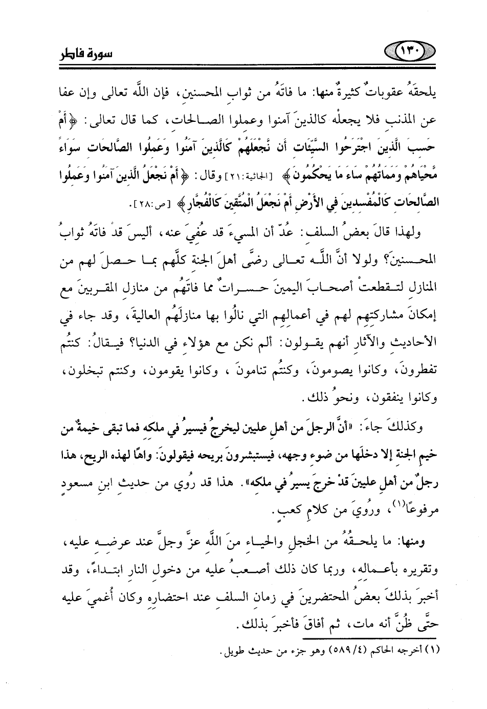 يلحقَهُ عقوبات كثيرة منها: ما فاتَهُ من ثوابِ المحسنينِ، فإن اللَّه تعالى وإن عفا عن المذنبِ فلا يجعلْه كالذينَ آمنوا وعمِلوا الصالحاتِ، كما قال تعالى: (أَمْ حَسِبَ الَّذِينَ اجْتَرَحُوا السَّيِّئَاتِ أَنْ نَجْعَلَهُمْ كَالَّذِينَ آمَنُوا وَعَمِلُوا الصَّالِحَاتِ سَوَاءً مَحْيَاهُمْ وَمَمَاتُهُمْ سَاءَ مَا يَحْكُمُونَ (21) .