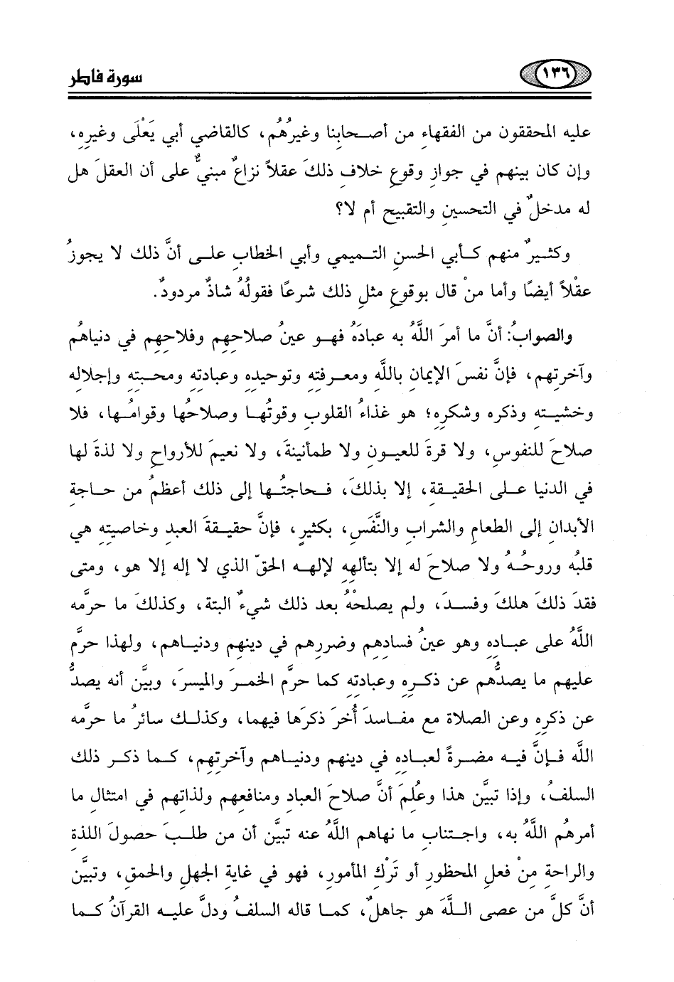 السلفُ، وإذا تبيَّن هذا وعُلِمَ أنَّ صلاحَ العبادِ ومنافعِهم ولذاتِهم في امتثالِ ما أمرهُم اللَهُ به، واجتنابِ ما نهاهم اللَّهُ عنه تبيَّن أن من طلبَ حصولَ اللذةِ
