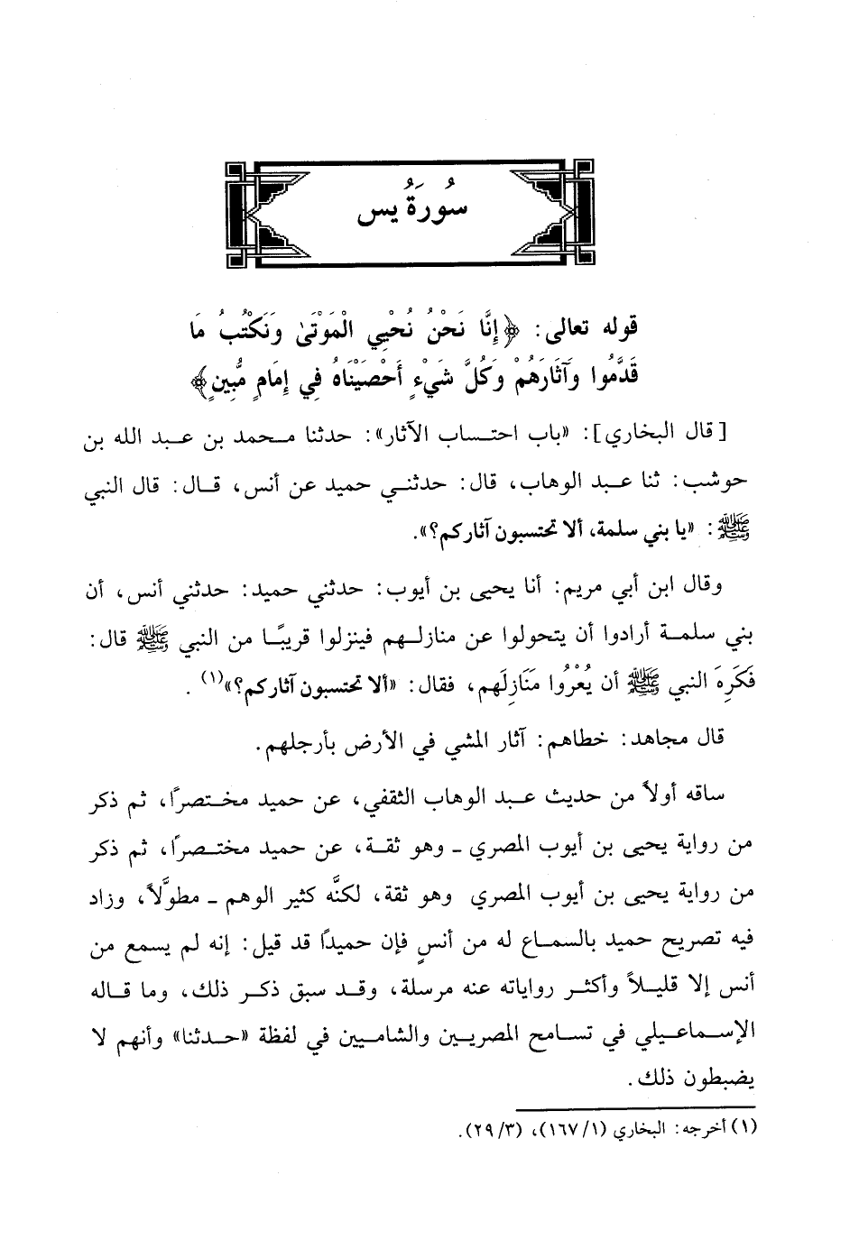 [قال البخاري] : "باب احتساب الآثار": حدثنا محمد بن عبد الله بن