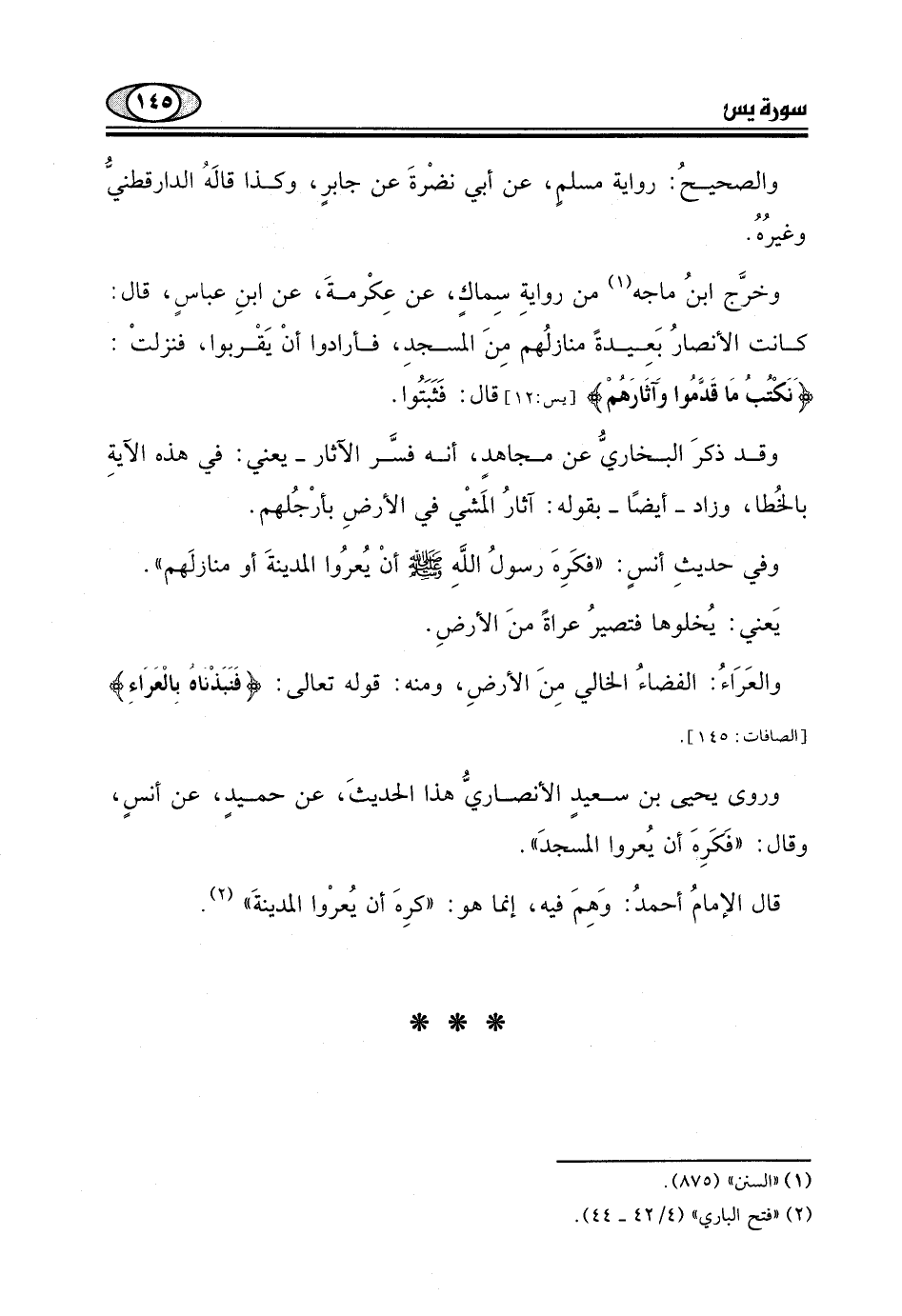 وفي حديثِ أنسٍ: "فكَرِهَ رسولُ اللَّهِ - صلى الله عليه وسلم - أنْ يُعرُوا المدينةَ أو منازلَهم ".