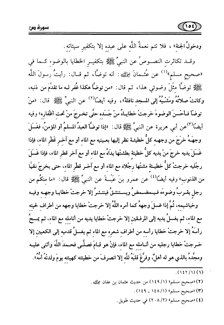 وقد تكاثرتِ النصوصُ عن النبيِّ - صلى الله عليه وسلم - بتكفيرِ الخطايا بالوضوءِ كما في "صحيح مسلم " عن عُثمانَ - رضي الله عنه -: أنه توضَّأ، ثم قال: رأيتُ رسولَ اللَّه - صلى الله عليه وسلم - توضَّأ مِثْلَ وضوئي هذا، ثم قال: "من توضَّأ هكذا غُفر له ما تقدَّمَ من ذنبه.