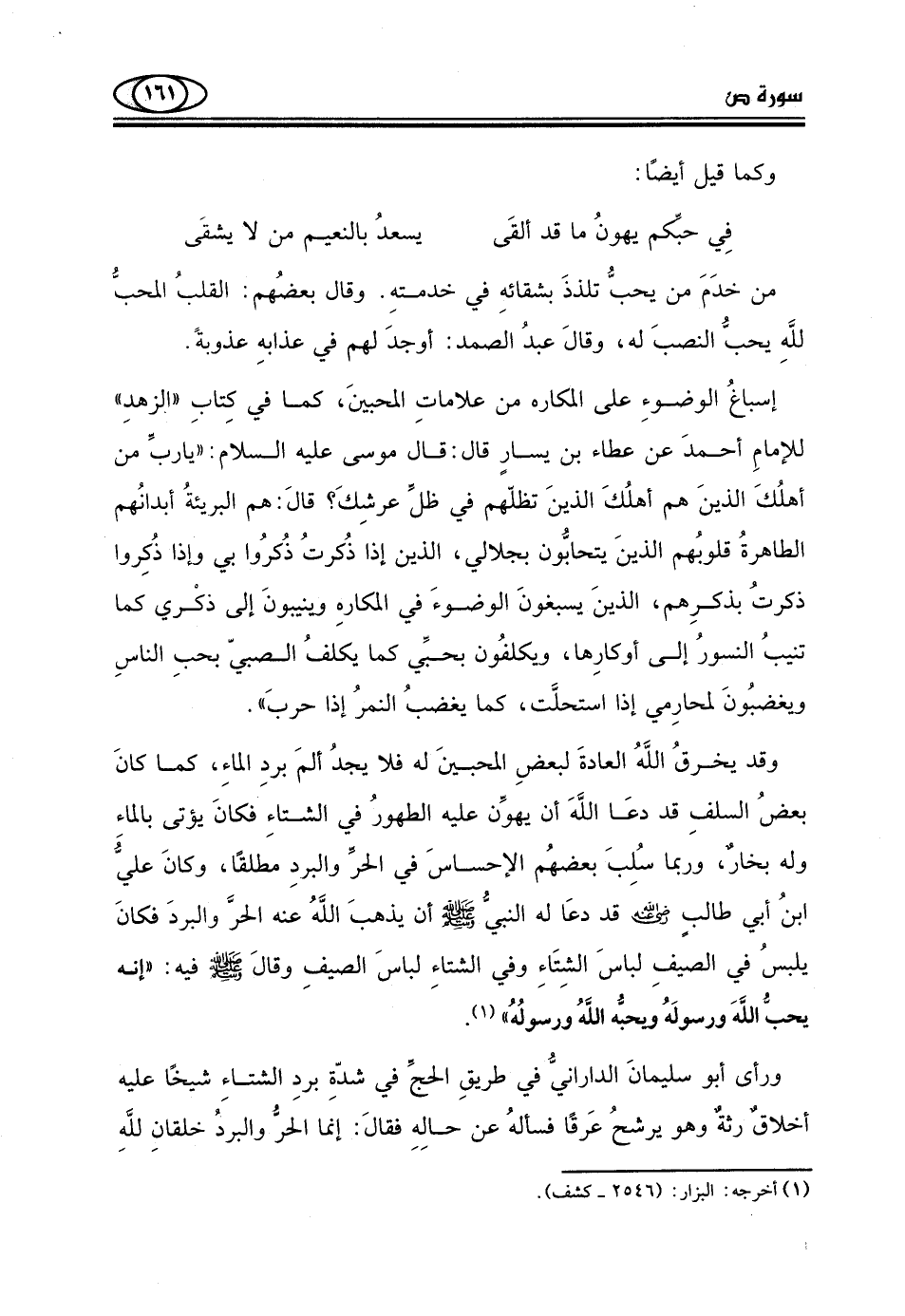 ورأى أبو سليمانَ الدارانيُّ في طريقِ الحج في شدّةِ بردِ الشتاءِ شيخًا عليه