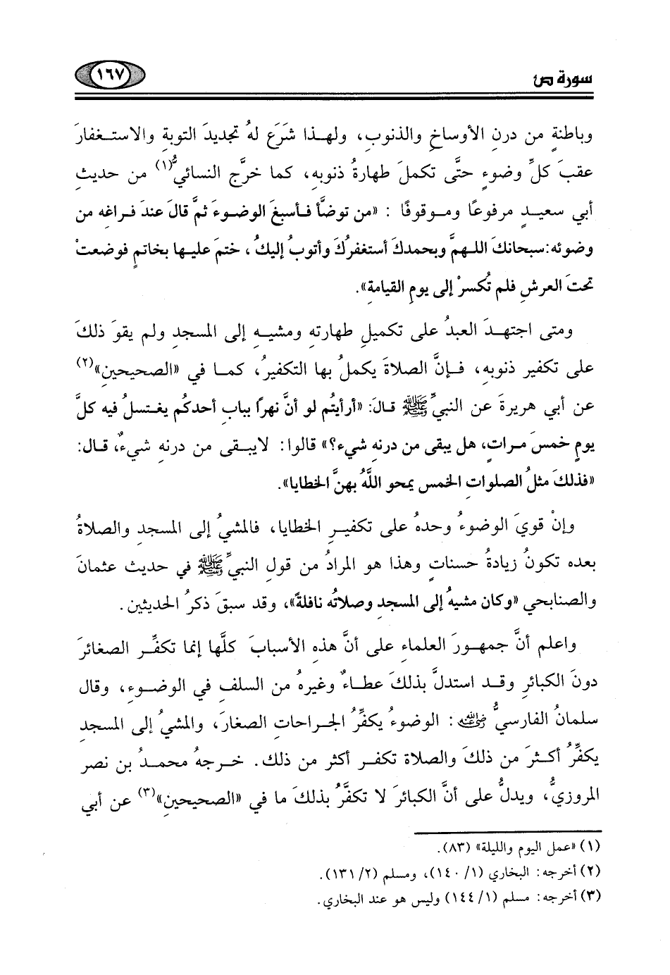 دونَ الكبائرِ وقد استدلَّ بذلكَ عطاءٌ وغيرهُ من السلفِ في الوضوءِ، وقال