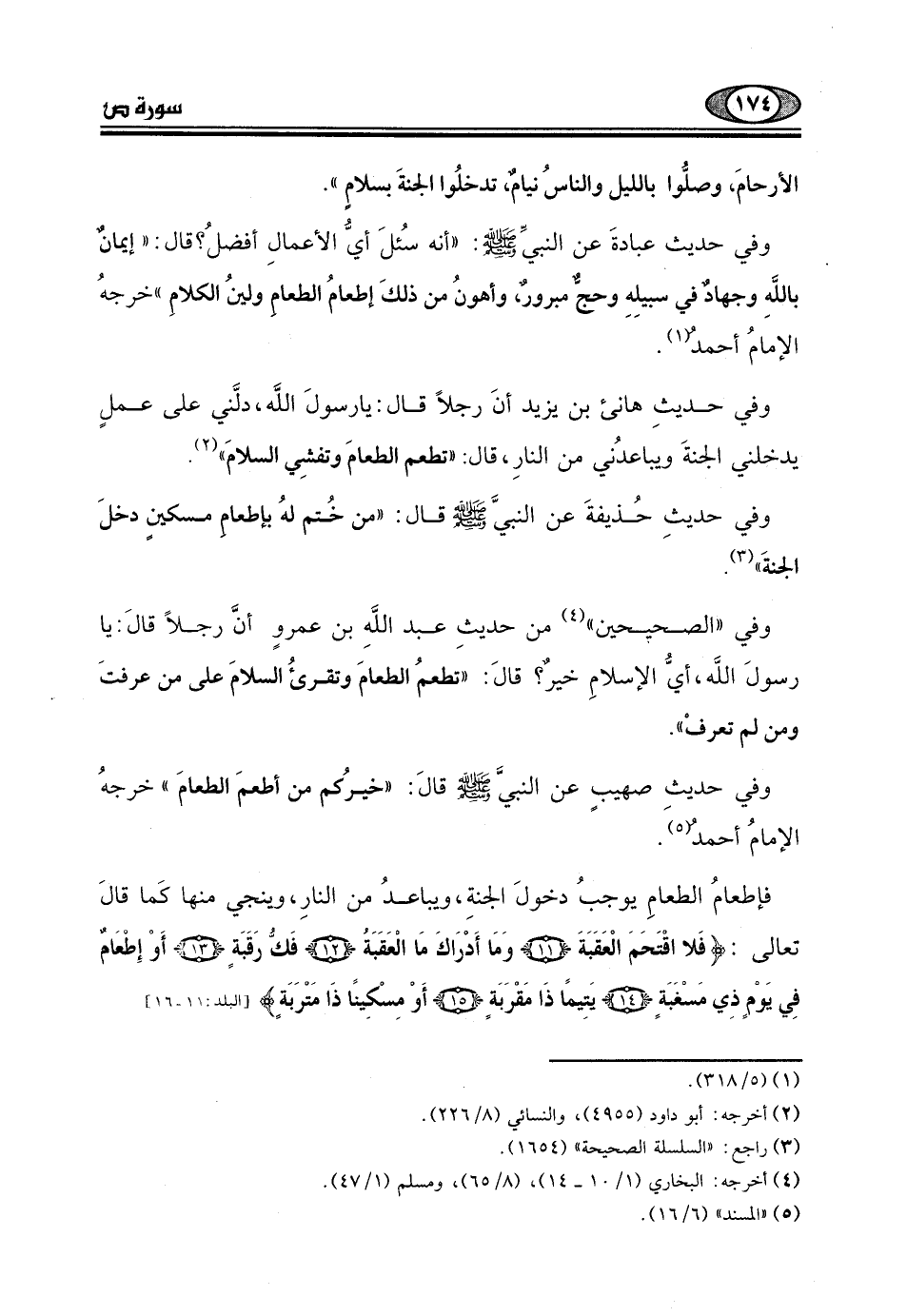" تطعم الطعامَ وتفشِي السلامَ ".