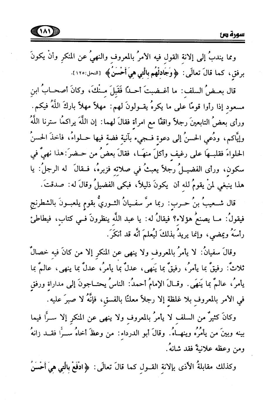 ومما يندبُ إلى إلانةِ القولِ فيه الأمرُ بالمعروفِ والنهيُ عن المنكرِ وأنْ يكونَ