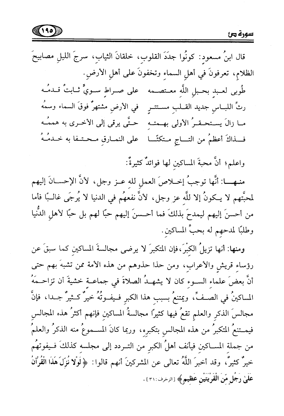 واعلم أنَّ محبةَ المساكينِ لها فوائدٌ كثيرة: