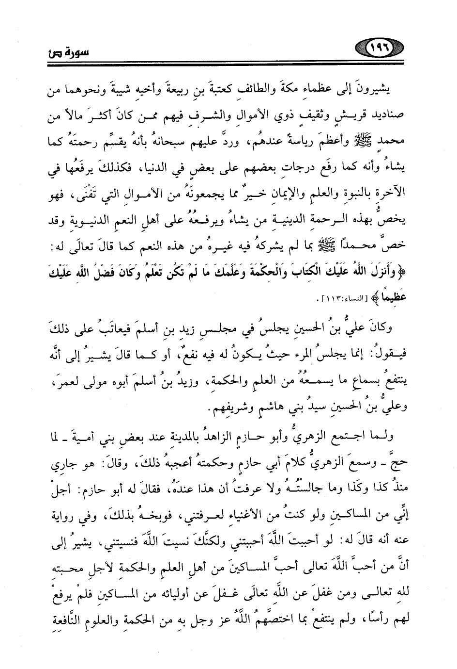 وكانَ عليٌّ بنُ الحسينِ يجلسُ في مجلسِ زيدِ بنِ أسلمَ فيعاتَبُ على ذلكَ