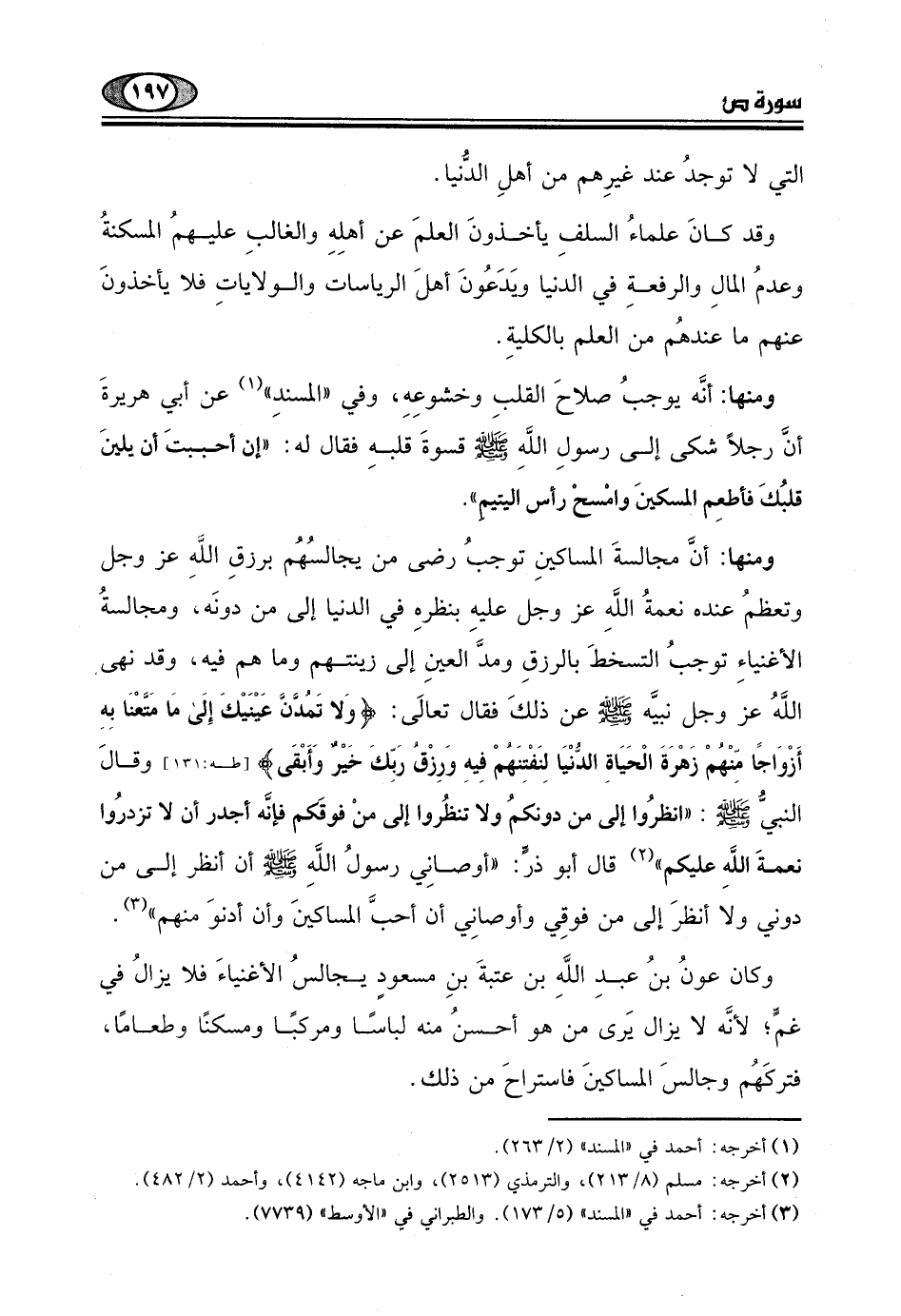 ومنها: أنَّه يوجبُ صلاحَ القلبِ وخشوعِهِ، وفي "المسندِ" عن أبي هريرةَ