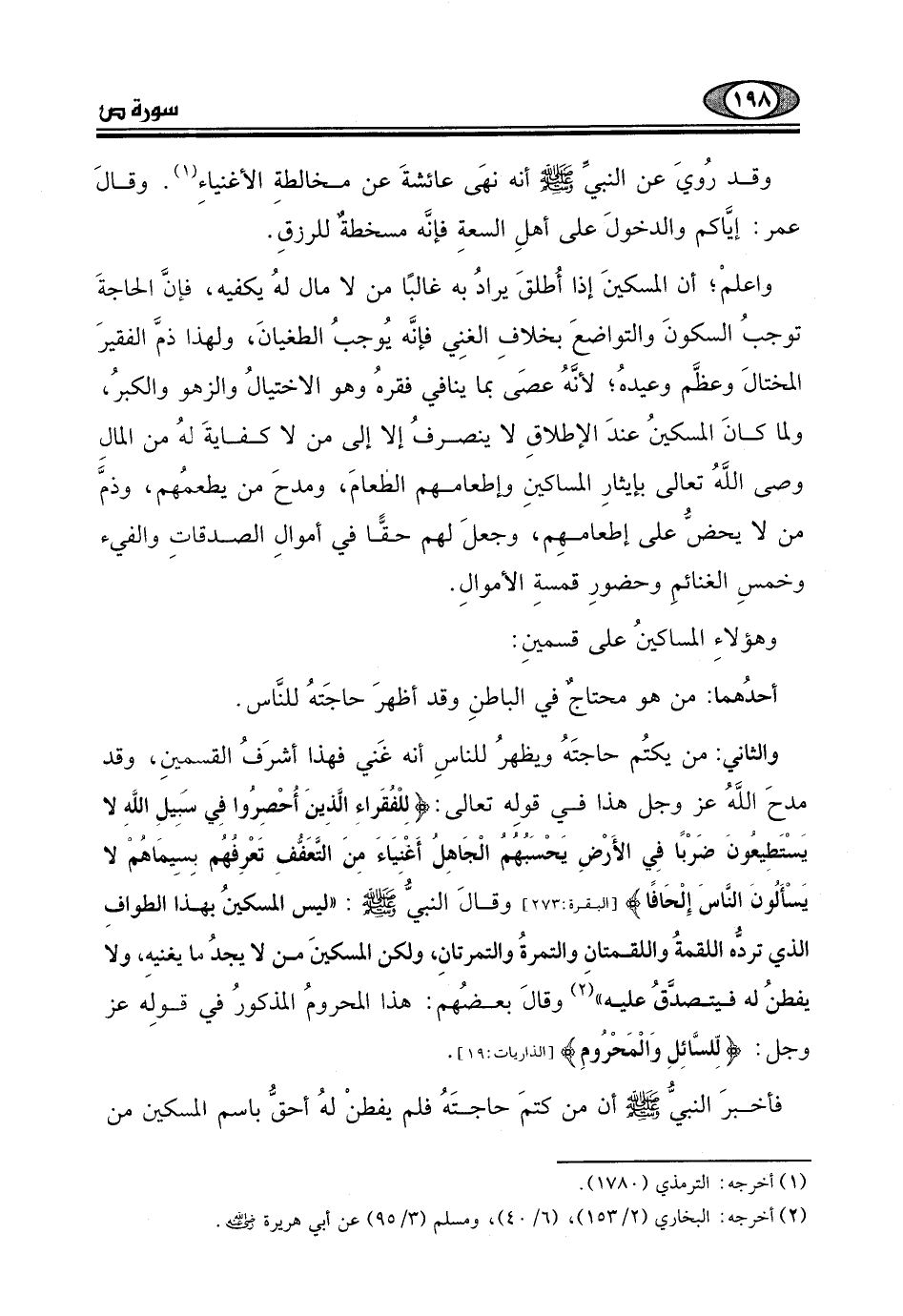 (لِلْفُقَرَاءِ الَّذِينَ أُحْصِرُوا فِي سَبِيلِ اللَّهِ لَا يَسْتَطِيعُونَ ضَرْبًا فِي الْأَرْضِ يَحْسَبُهُمُ الْجَاهِلُ أَغْنِيَاءَ مِنَ التَّعَفُّفِ تَعْرِفُهُمْ بِسِيمَاهُمْ لَا يَسْأَلُونَ النَّاسَ إِلْحَافًا) .