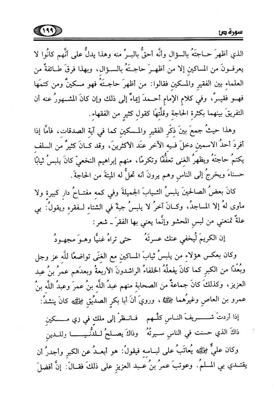 وكان بعكس هؤلاءِ من يلبسُ ثيابَ المساكينِ مع الغِنَى تواضعاً للهِ عز وجل