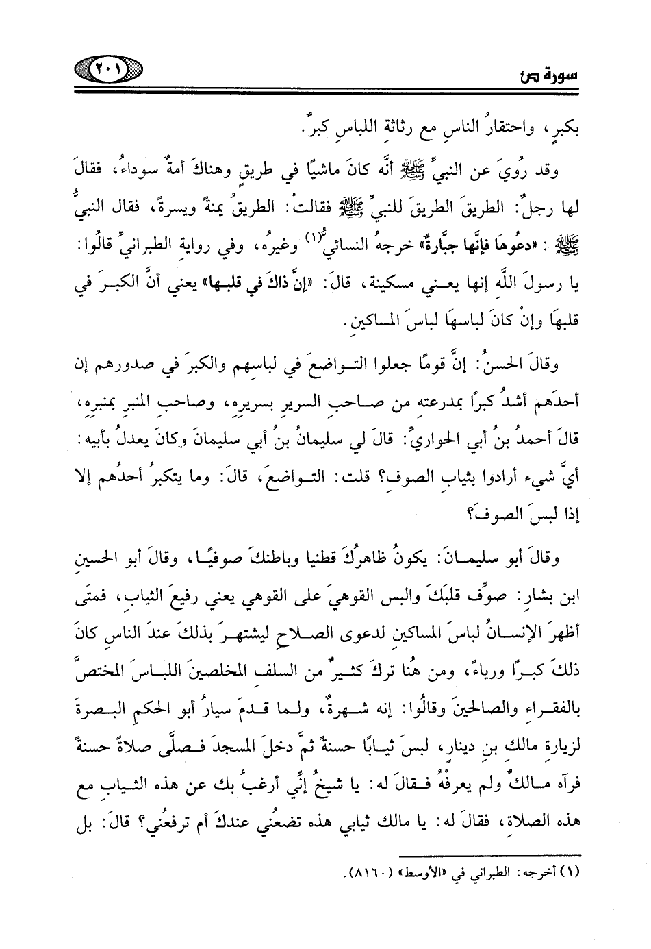 أحدَهم أشدُ كبرًا بمدرعتهِ من صاحبِ السريرِ بسريره، وصاحبِ المنبرِ بمنبرِهِ، قالَ أحمدُ بنُ أبي الحواريّ: قالَ لي سليمانُ بنُ أبي سليمانَ