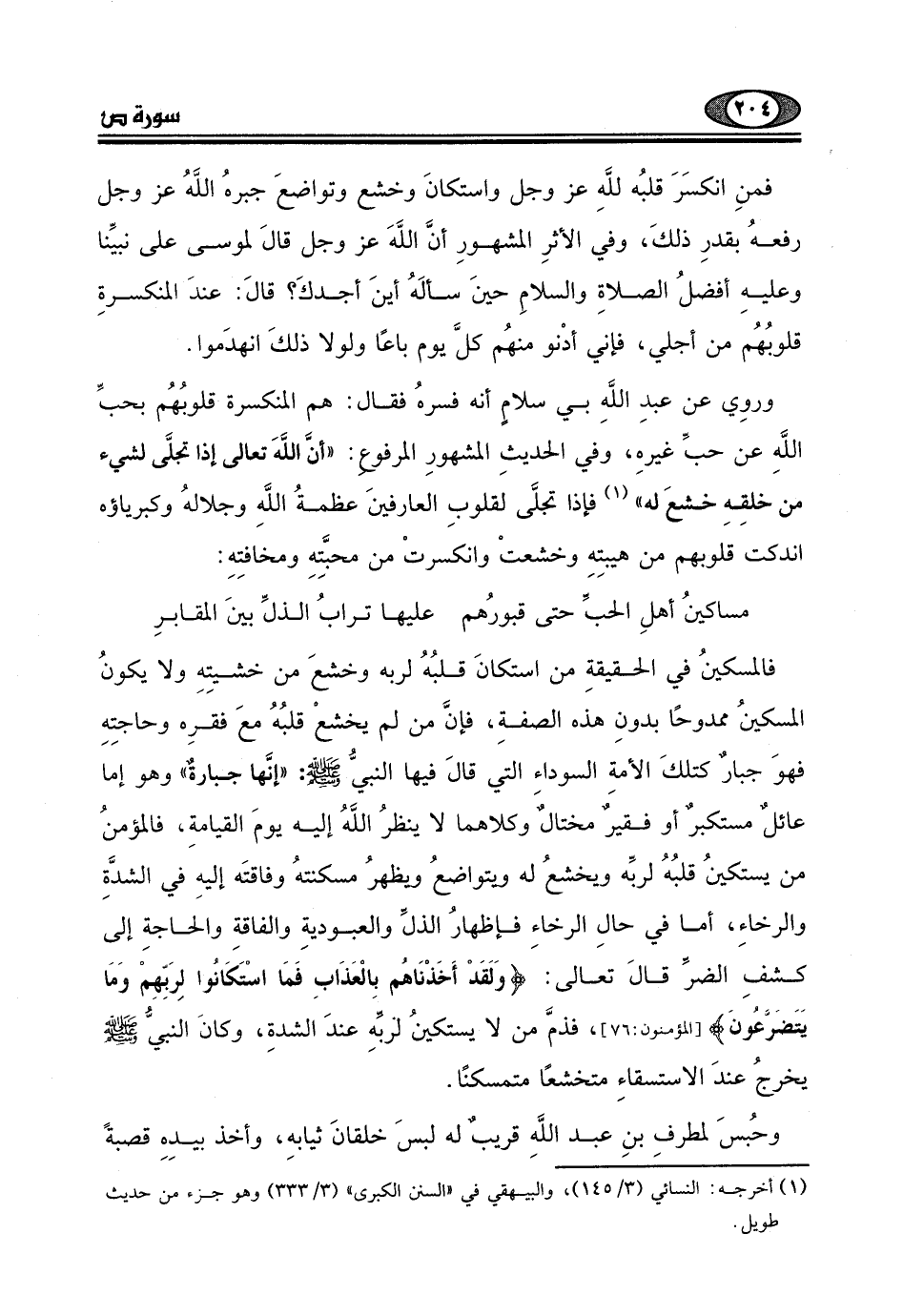 وروِي عن عبدِ اللَّهِ بي سلامٍ أنه فسرهُ فقال: هم المنكسرة قلوبُهُم بحبِّ