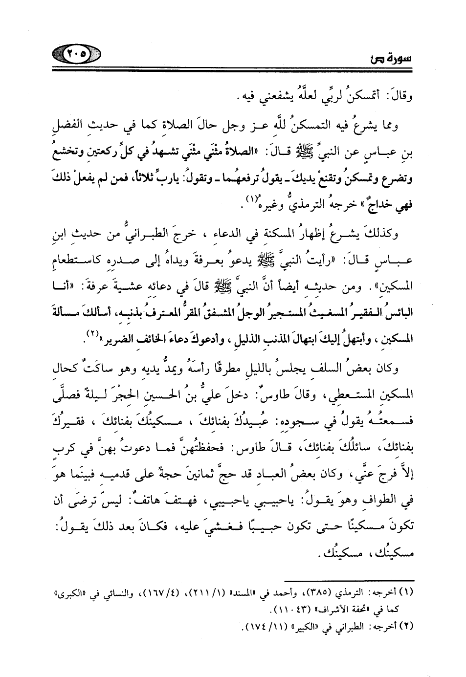 ومما يشرعُ فيه التمسكنُ للَّهِ عز وجل حالَ الصلاةِ كما في حديثِ الفضلِ