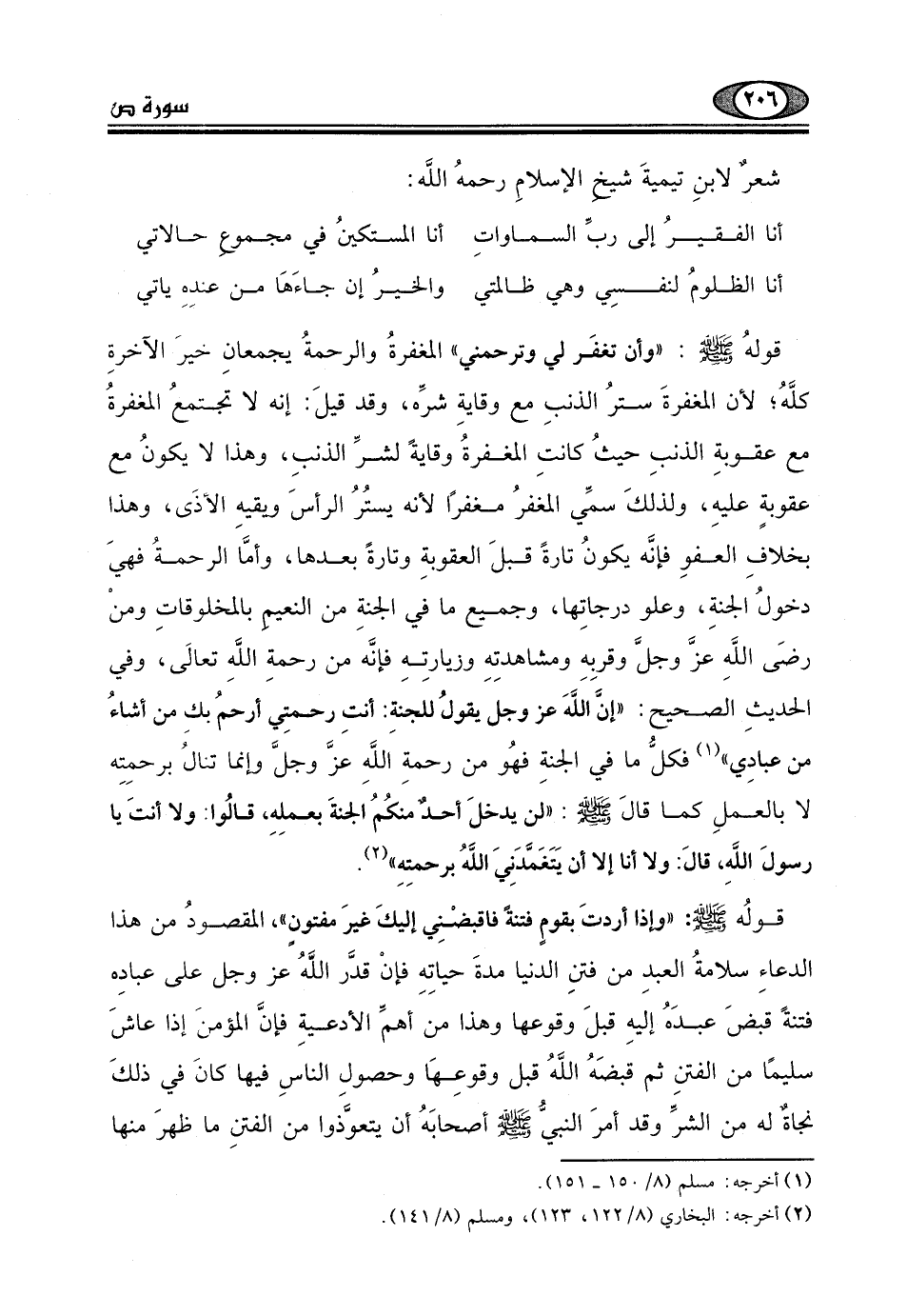 "وإذا أردتَ بقومٍ فتنةً فاقبضْنِي إليكَ غيرَ مفتونٍ ".