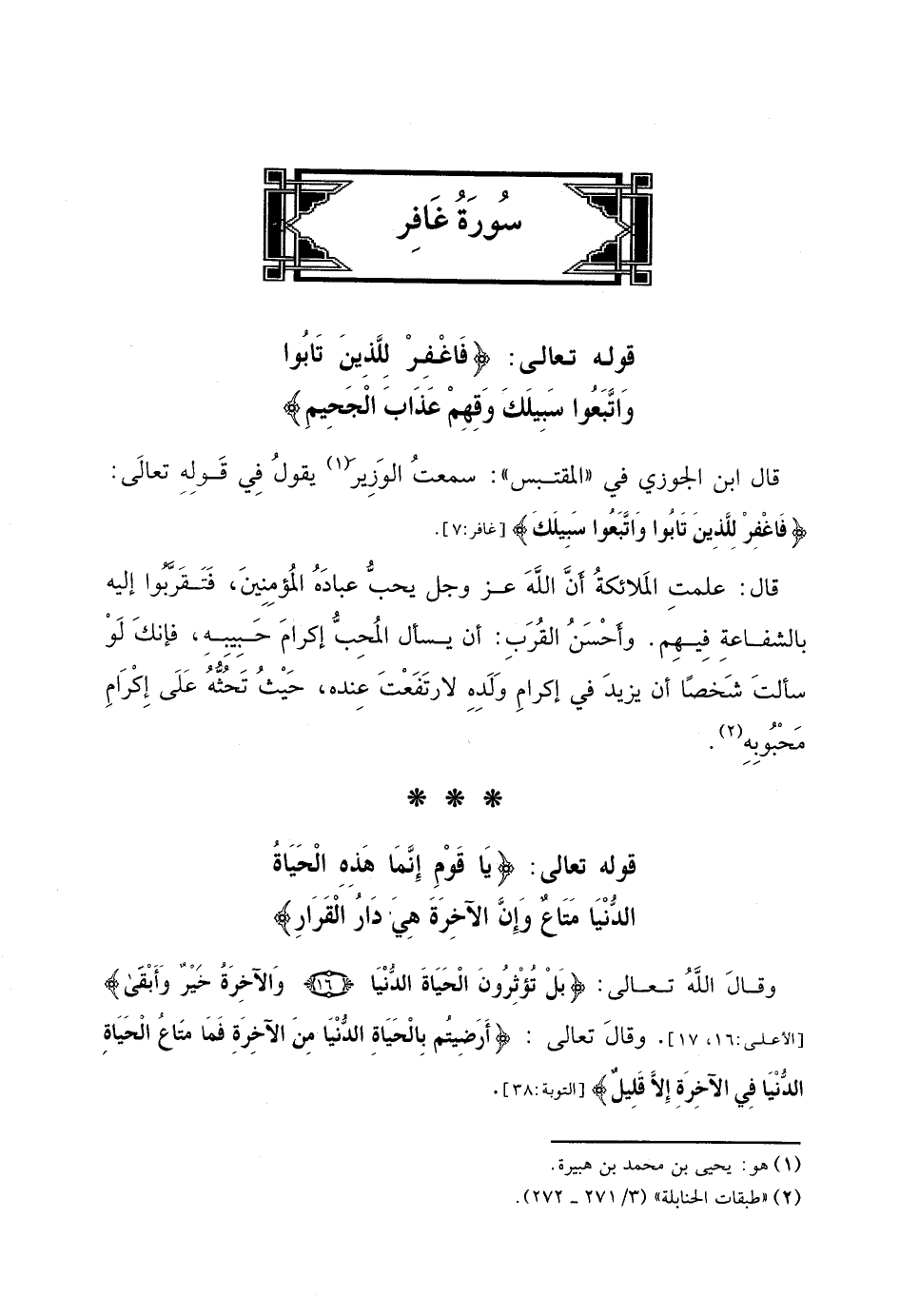 قال ابن الجوزي في "المقتبس ": سمعتُ الوَزِير13) يقولُ فِي قَولِهِ تعالَى: