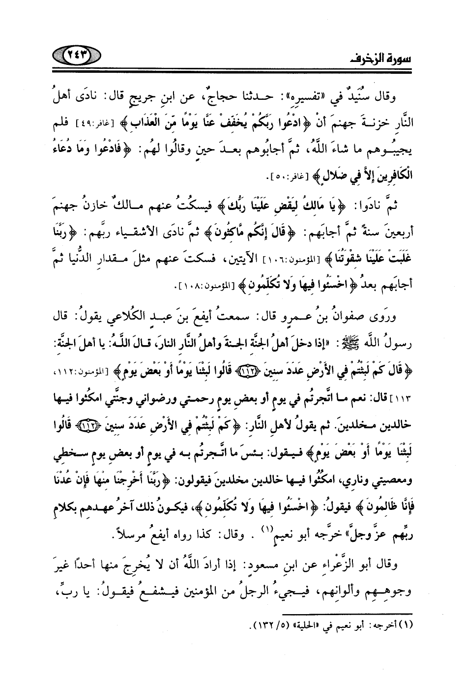 وقال سُنَيدٌ في "تفسير ": حدثنا حجافي، عن ابنِ جريج قال: نادَى أهلُ