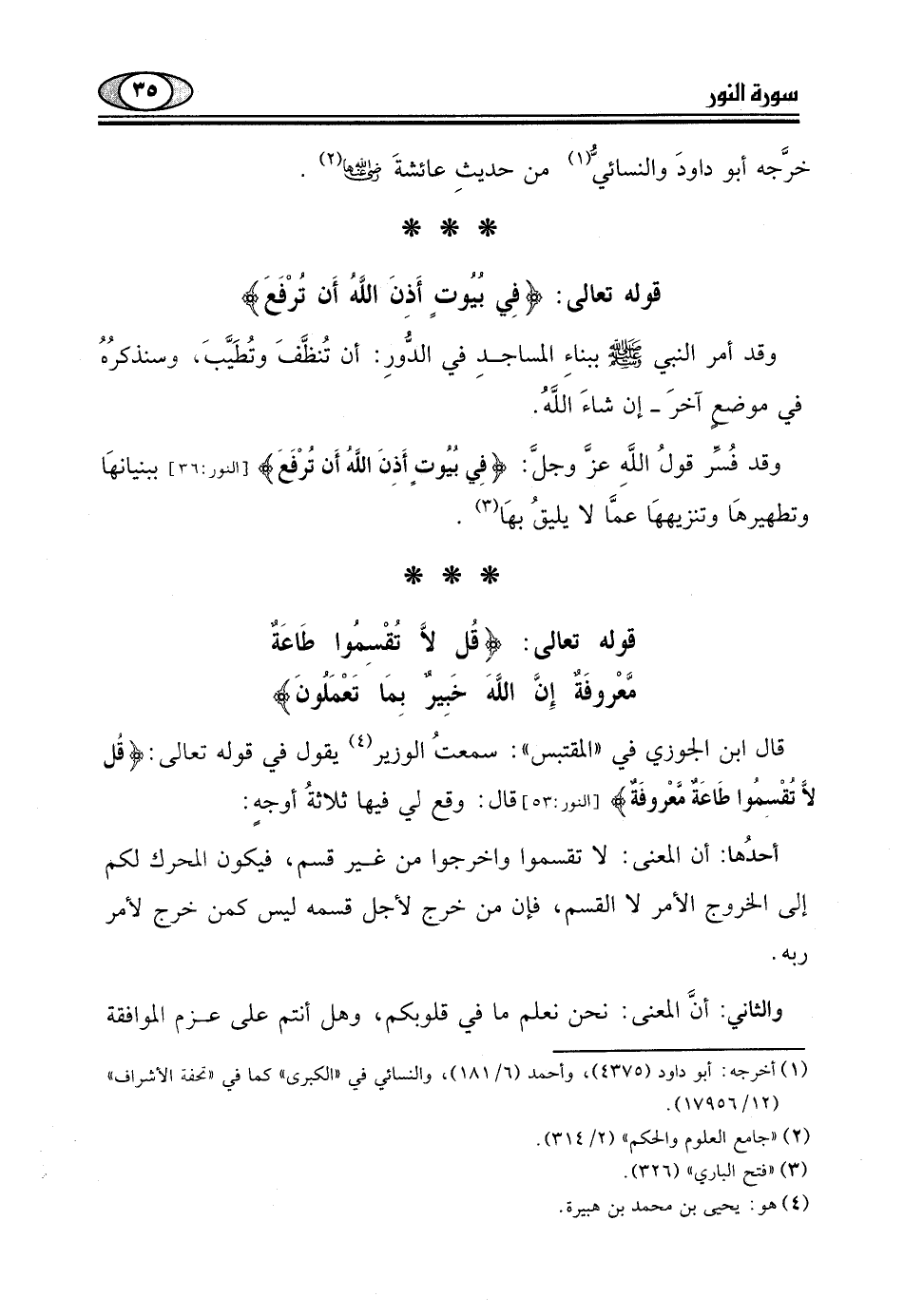 قال ابن الجوزي في "المقتبس ": سمعتُ الوزير يقول في قوله تعالى:
