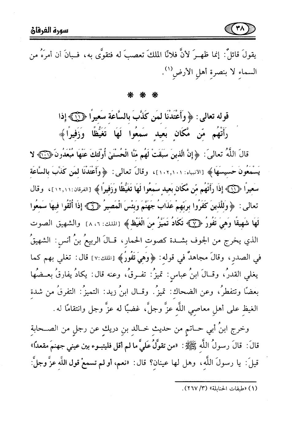 قوله تعالى: (وَأَعْتَدْنَا لِمَنْ كَذَّبَ بِالسَّاعَةِ سَعِيرًا (11) إِذَا رَأَتْهُمْ مِنْ مَكَانٍ بَعِيدٍ سَمِعُوا لَهَا تَغَيُّظًا وَزَفِيرًا (12)