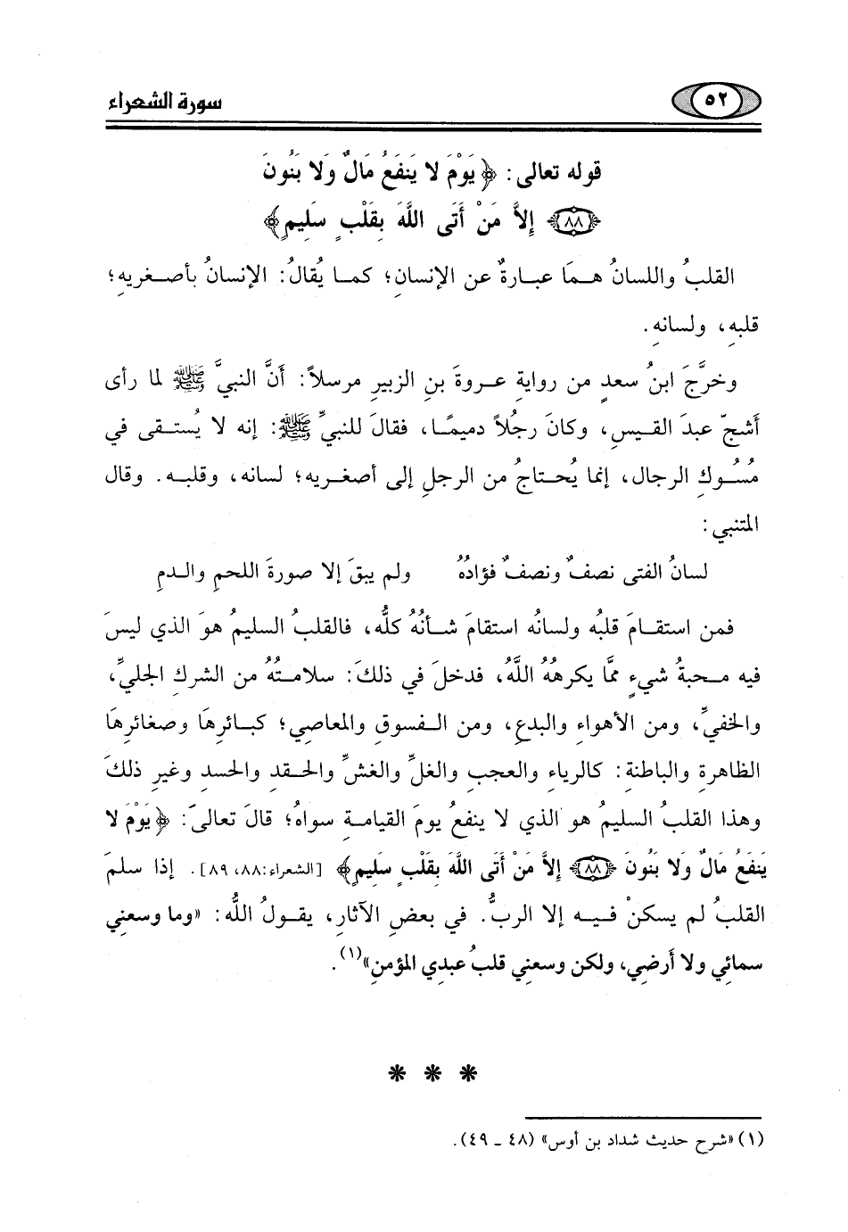 وهذا القلبُ السليمُ هو الذي لا ينفعُ يومَ القيامةِ سواهُ؛ قالَ تعالى: