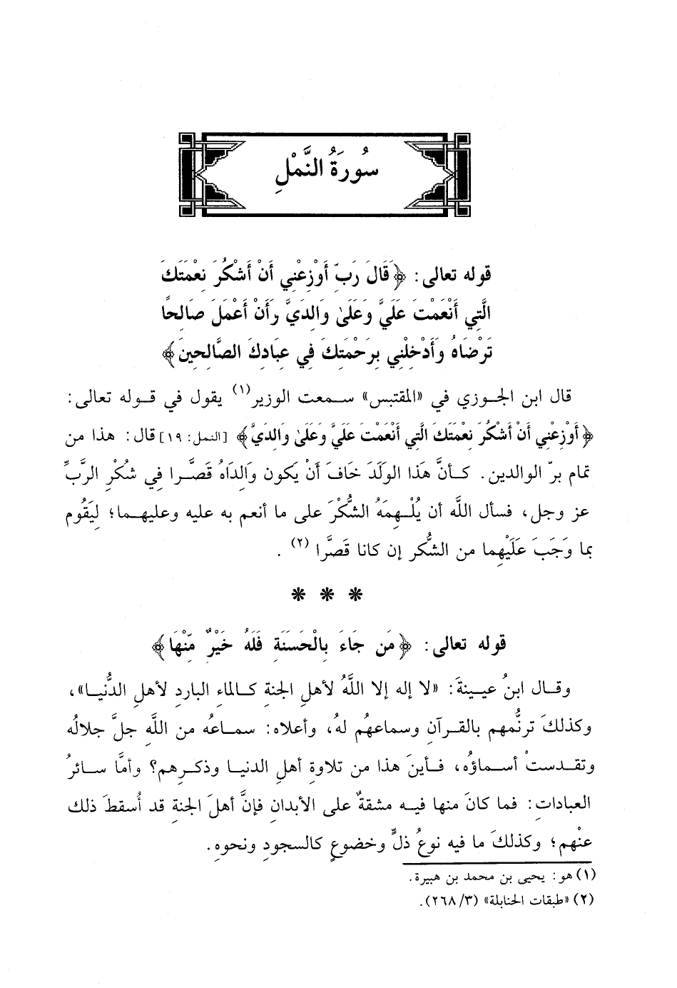 قال ابن الجوزي في "المقتبس " سمعت الوزير يقول في قوله تعالى: