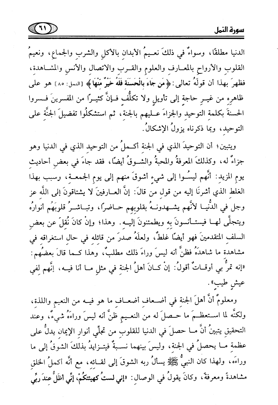 ويتبين؛ أن التوحيدَ الذي في الجنةِ أكملُ من التوحيدِ الذي في الدنيا وهو