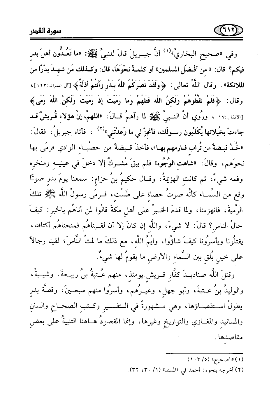 والوليدُ بنُ عتبةَ، وأبو جهلٍ، وغيرُهم، وأسرُوا منهم سبعينَ، وقصَّة بدرٍ