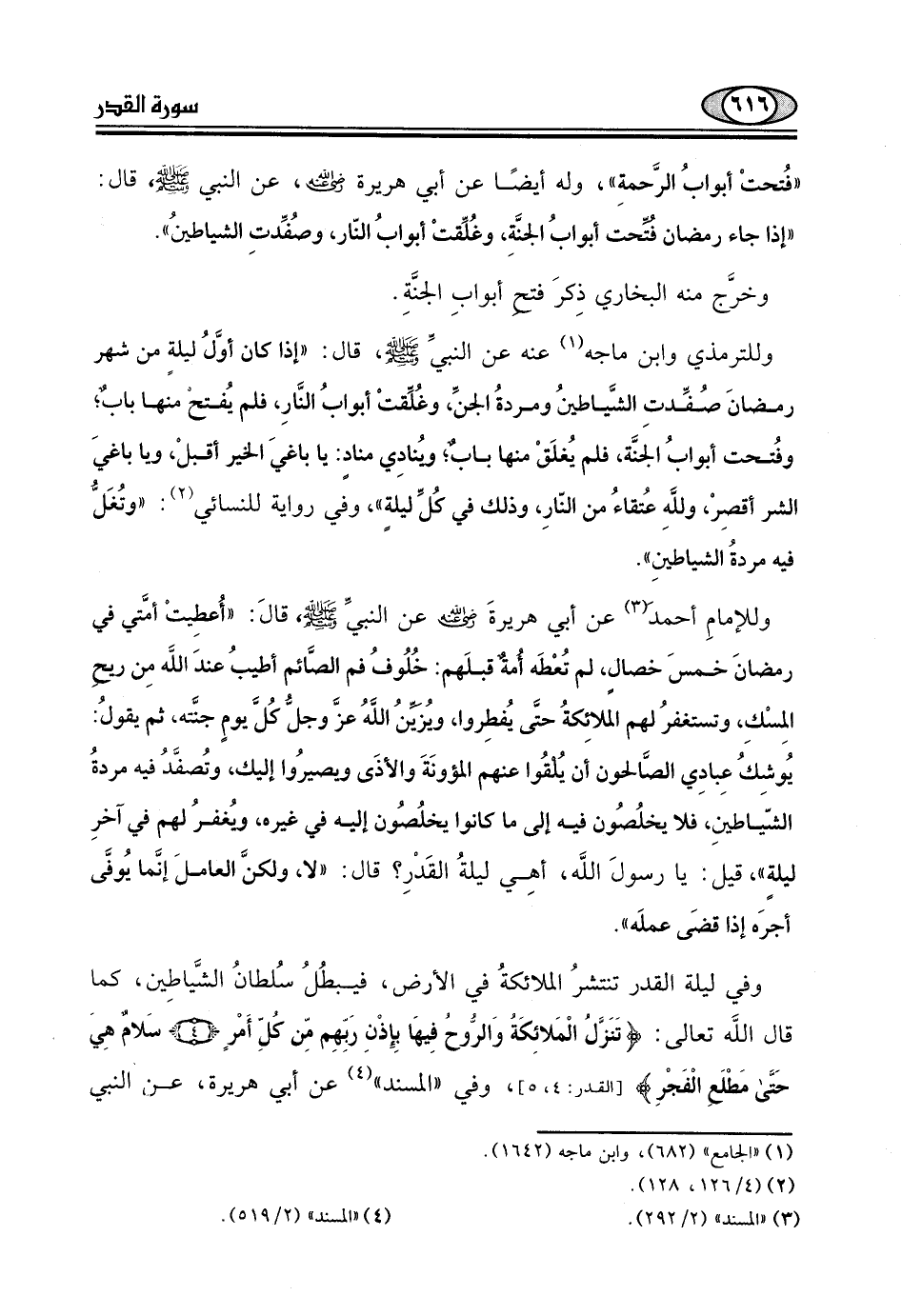 وفي ليلة القدر تنتشرُ الملائكةُ في الأرض، فيبطُلُ سُلطانُ الشَّياطِين، كما