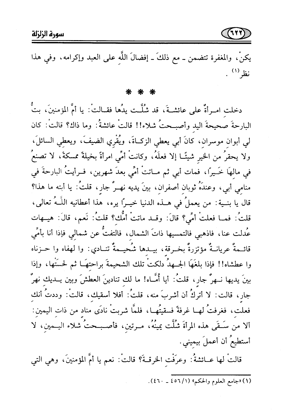 البارحةَ صحيحةَ اليدِ وأصبحتُ شلاء!! قالتْ عائشةُ: وما ذاك؟