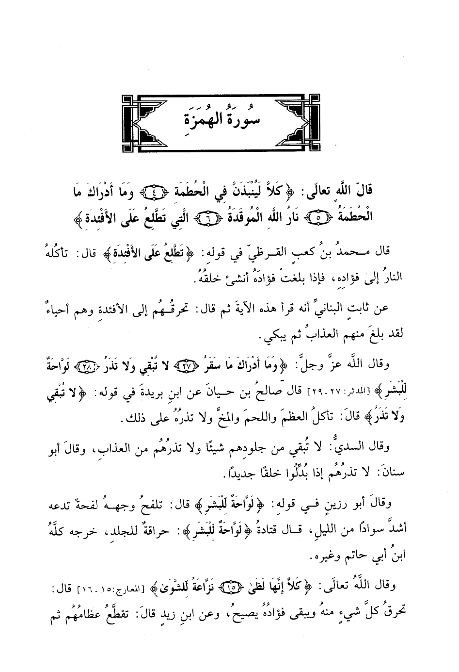 قالّ اللَّهٍ تعالّى: (كَلَّا لَيُنْبَذَنَّ فِي الْحُطَمَةِ (4) وَمَا أَدْرَاكَ مَا الْحُطَمَةُ (5) نَارُ اللَّهِ الْمُوقَدَةُ (6) الَّتِي تَطَّلِعُ عَلَى الْأَفْئِدَةِ (7)