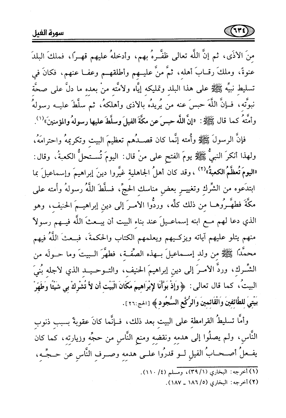 وأمَّا تسليطُ القرامطةِ على البيتِ بعد ذلك، فإنَّما كانَ عقوبةً بسببِ ذنوبِ