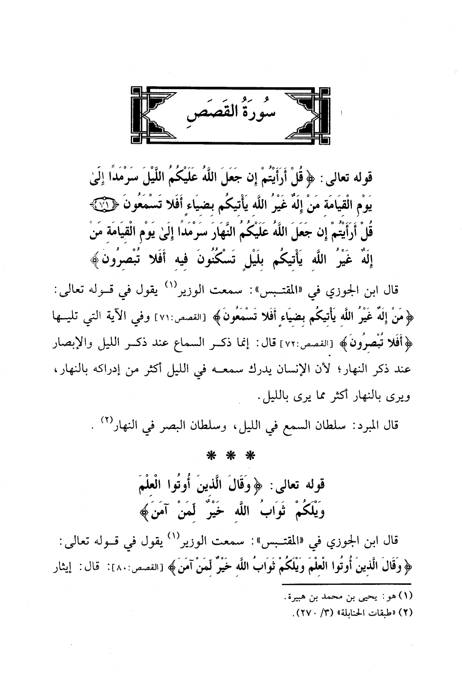 قال ابن الجوزي في "المقتبس ": سمعت الوزير يقول في قوله تعالى: