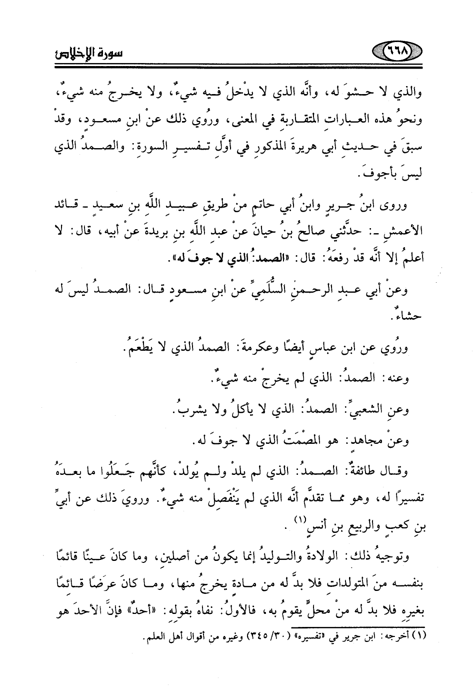 وعنِ الشعبيِّ: الصمدُ: الذي لا يأكلُ ولا يشربُ.